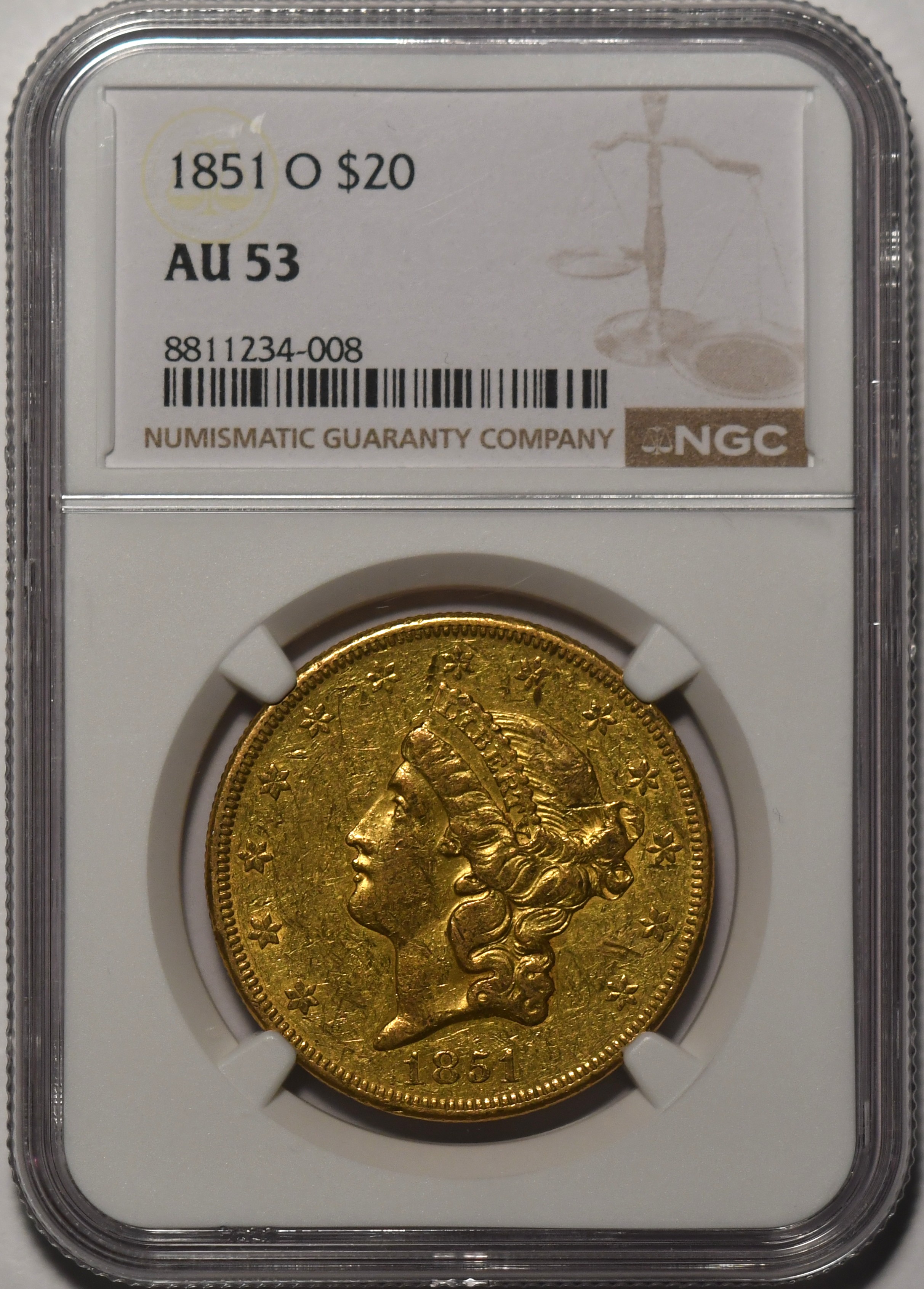 1851-O $20 NGC AU53 Nice and crusty old type 1 from the Big Easy showing nice originality.