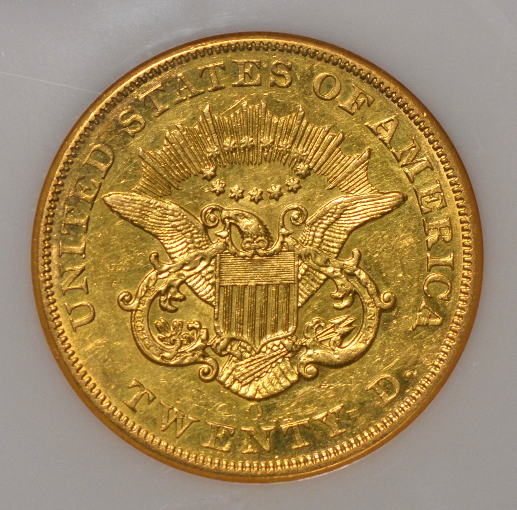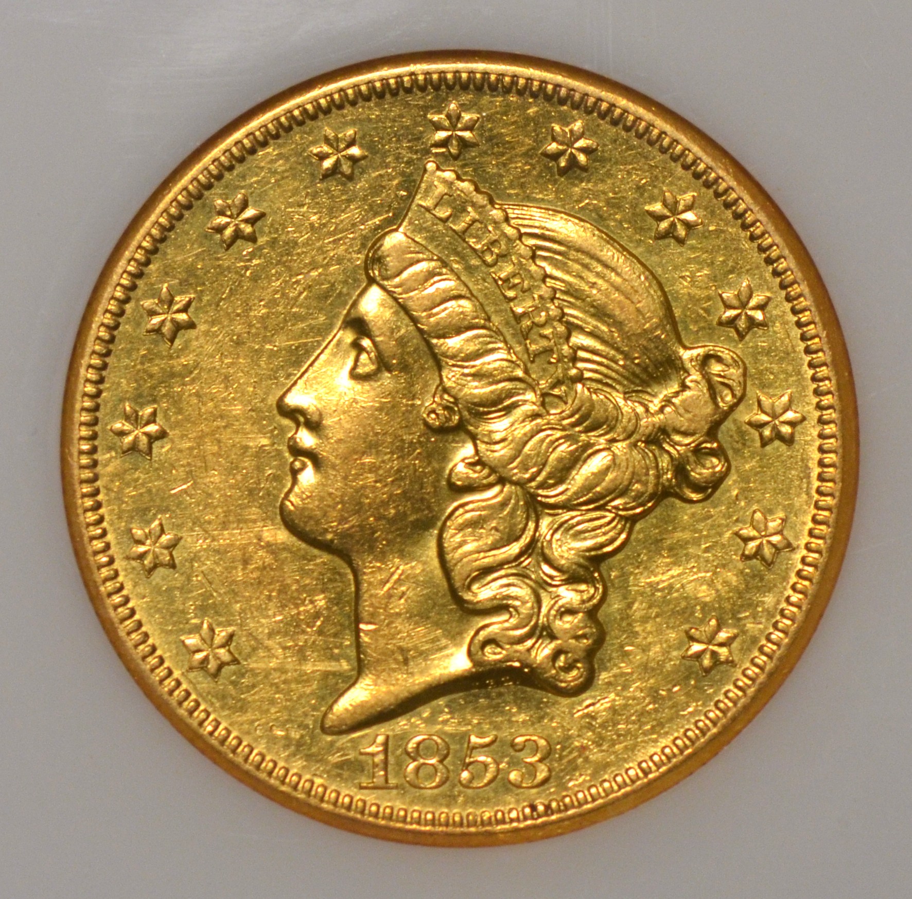 1853-O $20 NGC AU58 This conditionally scarce and lovely early New Orleans double eagle is among the most affordable of earlies in higher grades like this one. Coveted old holder.