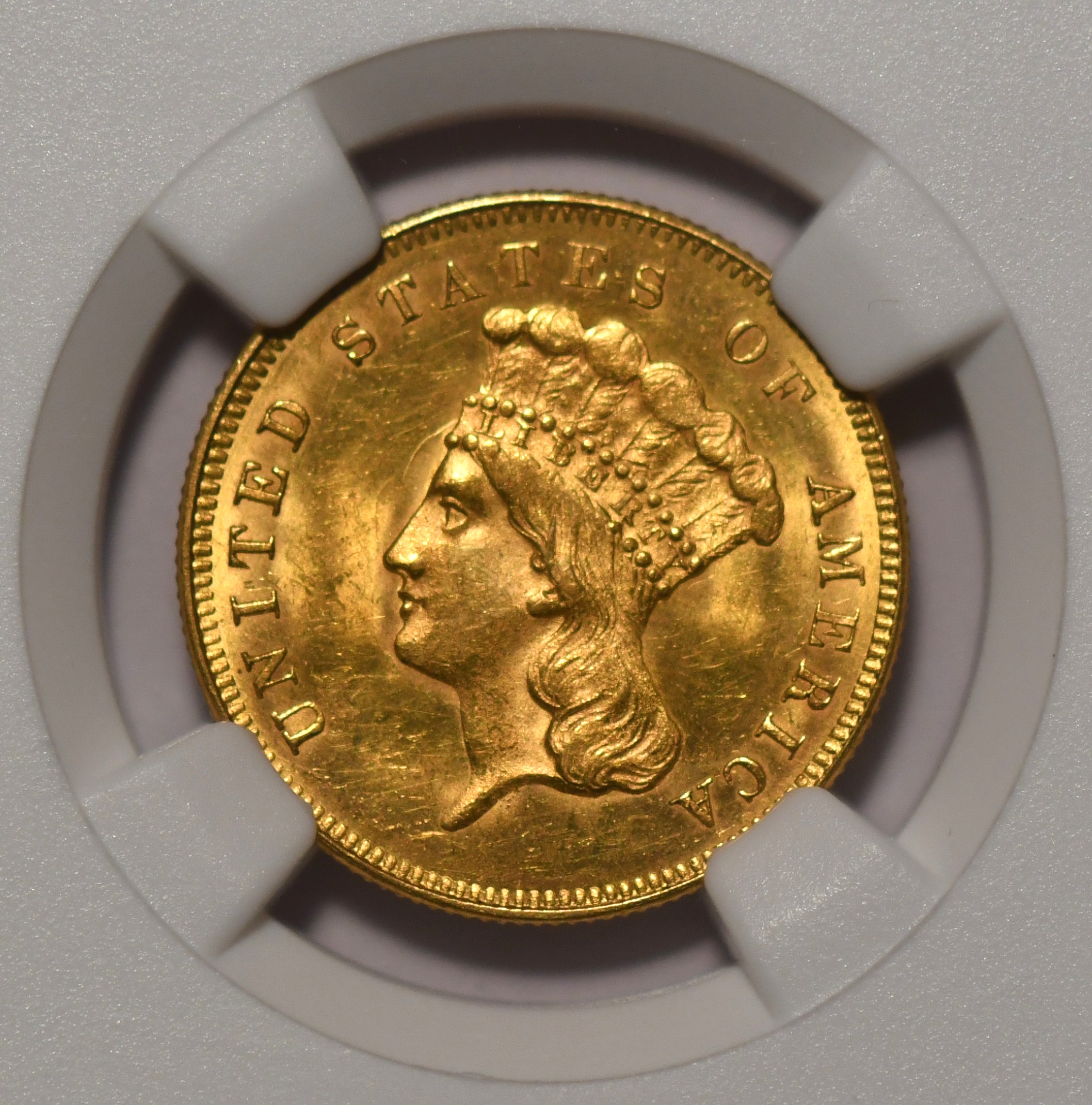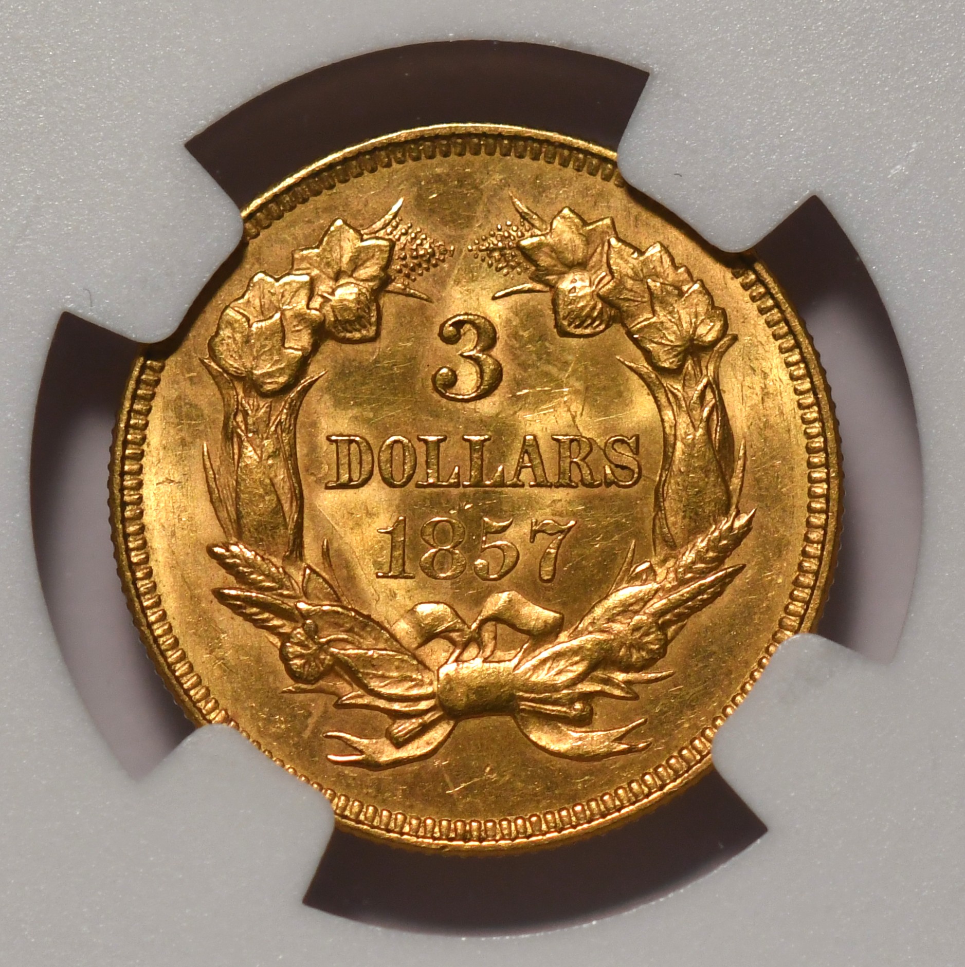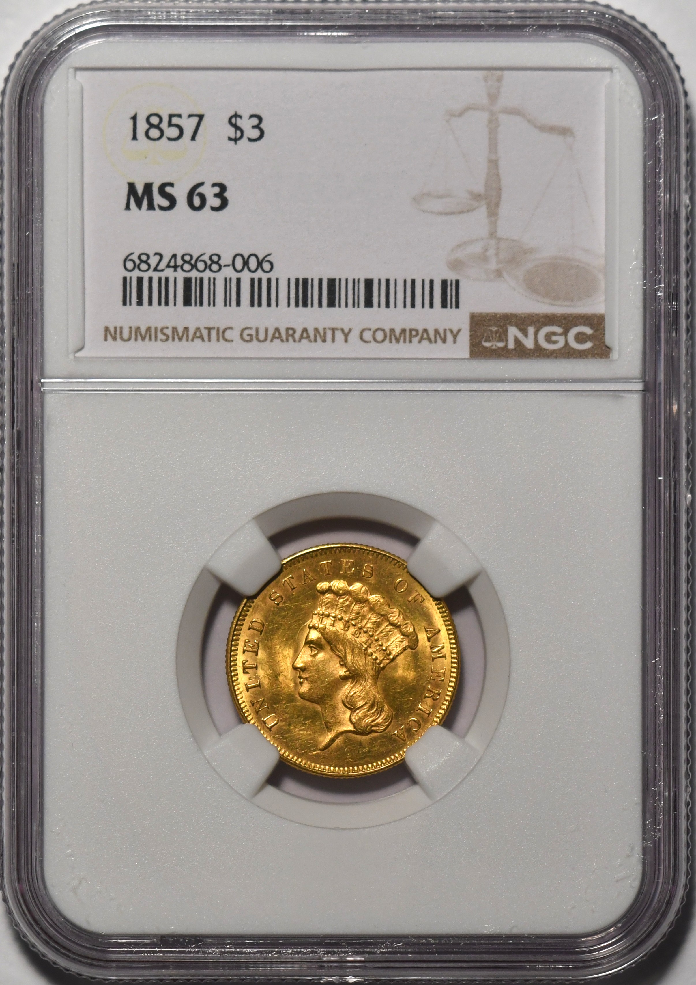 1857 $3 NGC MS63 Rare $3.00 gold in very choice uncirculated condition, low pop 86/5