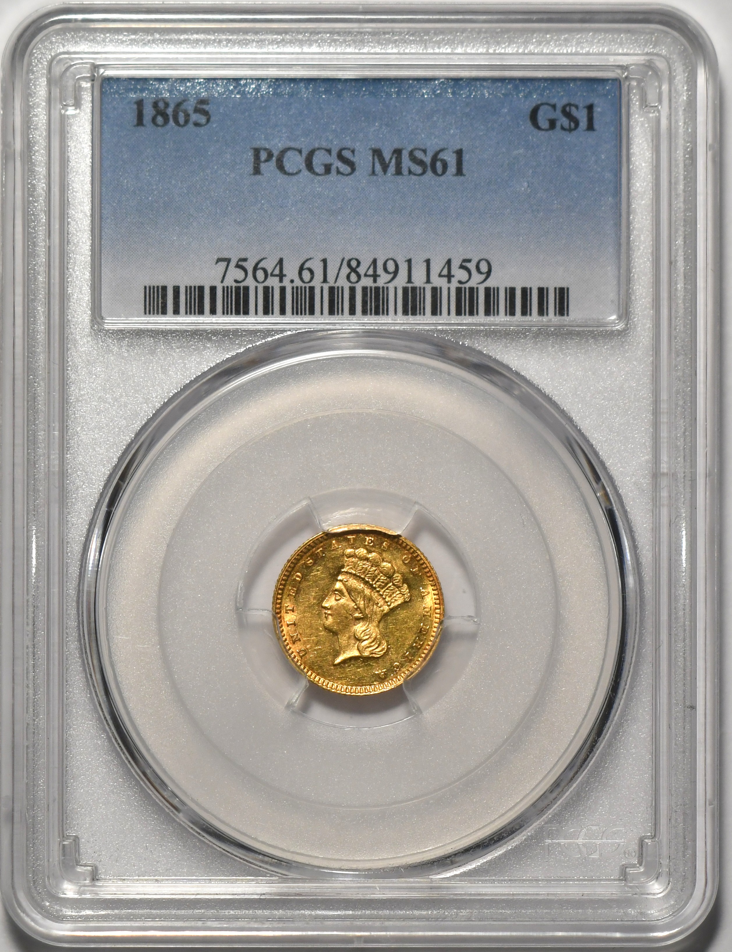 1865 Gold $1 PCGS MS61