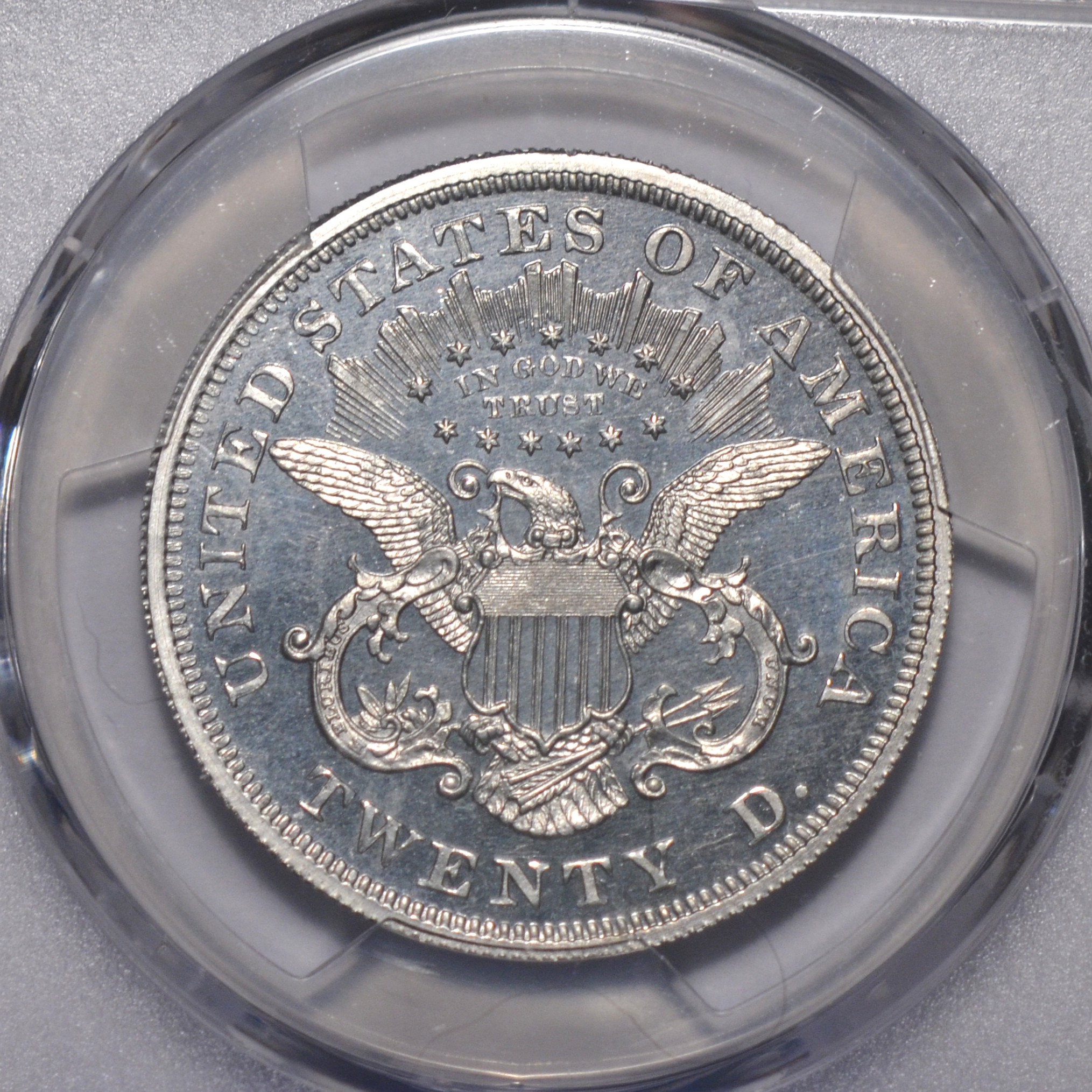 Incredible 1875 Double Eagle Pattern, PCGS Proof 65 Cameo Judd 1449 in Aluminum, which at the time this was struck was more valuable than gold and as such was used in special presentations to foreign dignitaries, other important people. This coin comes from a dealers personal collection. He had purchased this coin to put away for his children. Very rare opportunity.