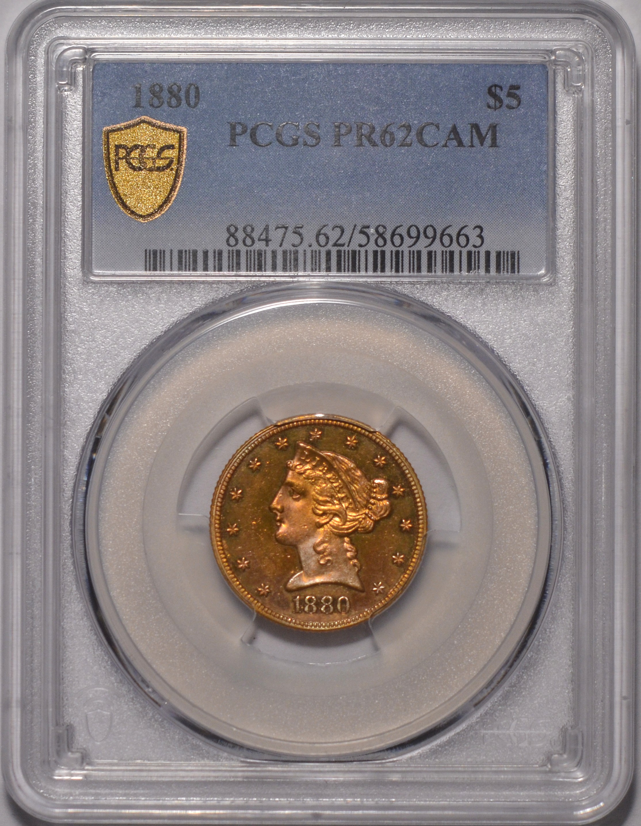 1880 $5 PCGS PF62 CAM Very rare half eagle gold proof of 1880. Even rarer than the tiny mintage of 36 suggests. Population a mere 13, 07 both services!