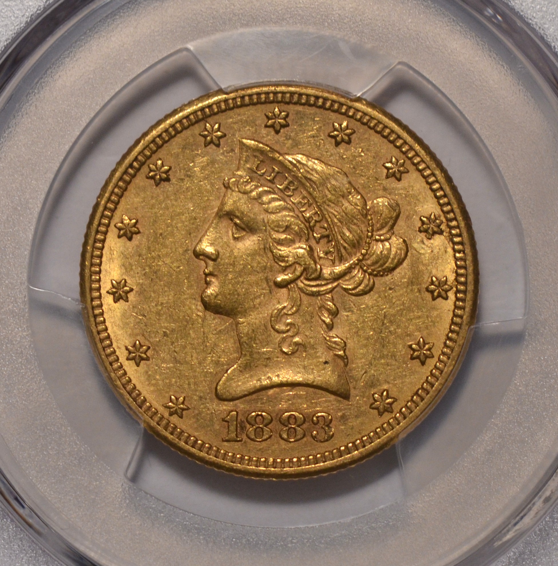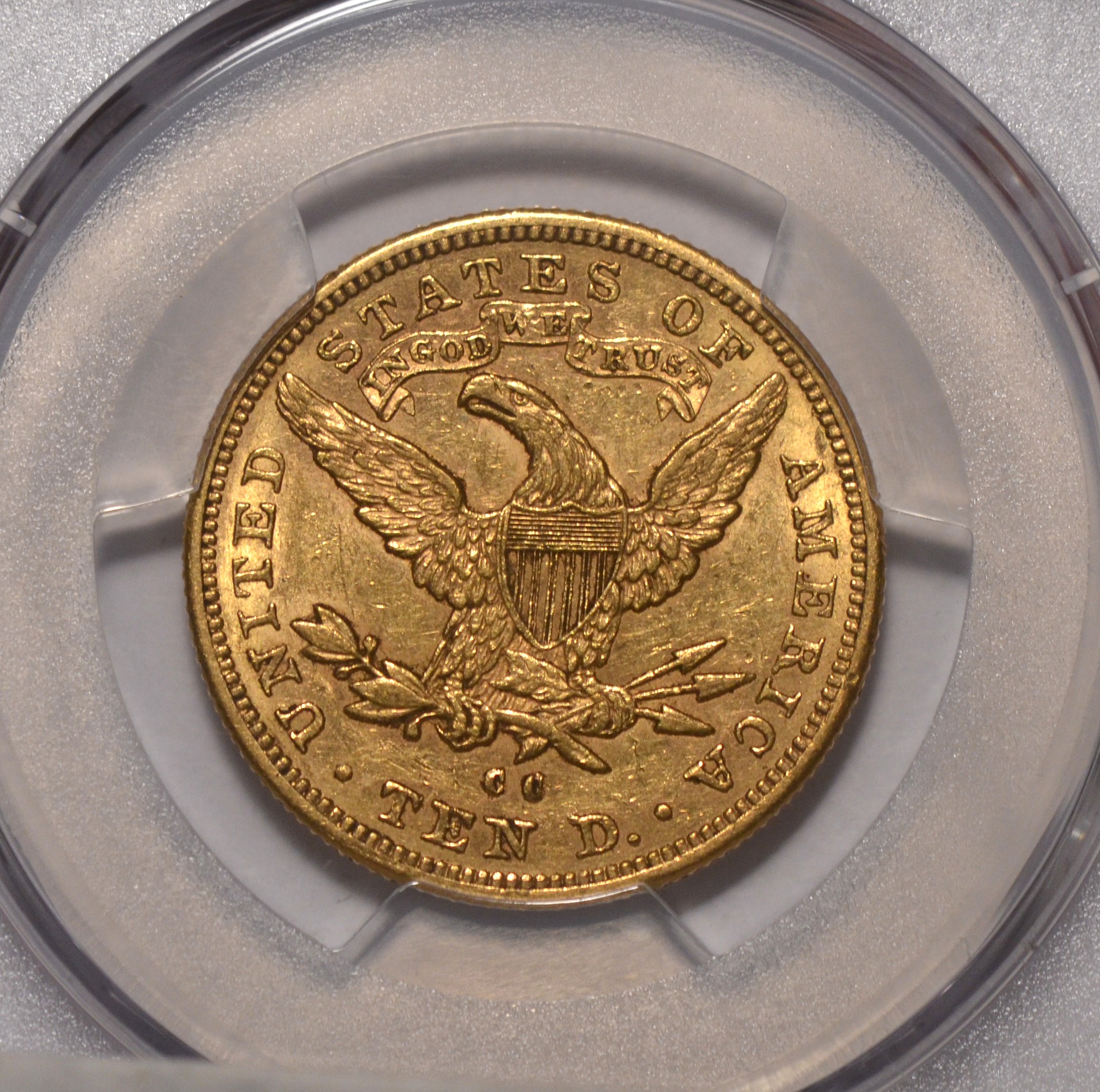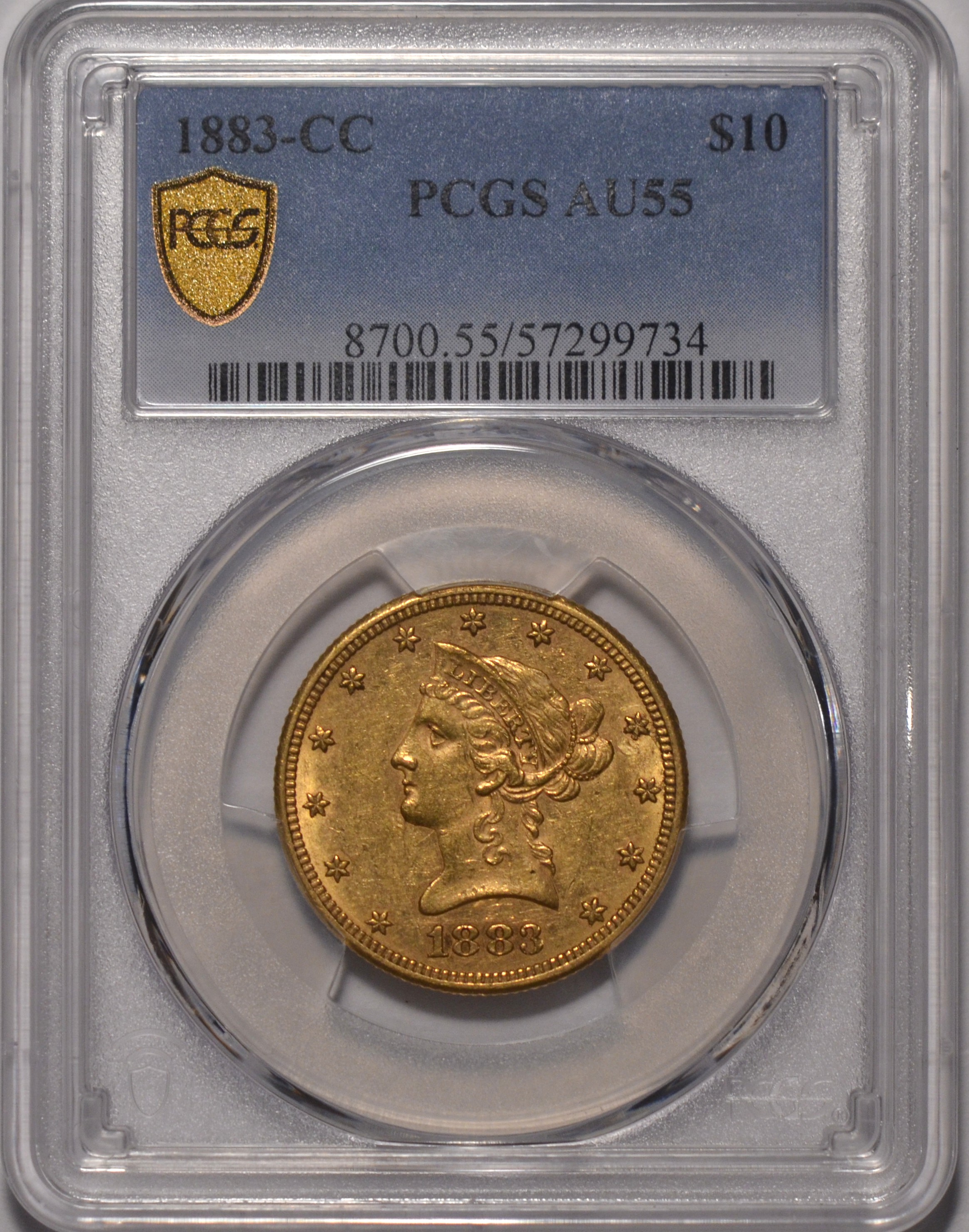 1883-CC $10 PCGS AU55 Well-balanced example of a scarce CC issue. All Carson City Eagles in this excellent condition are highly prized by knowledgeable collectors.