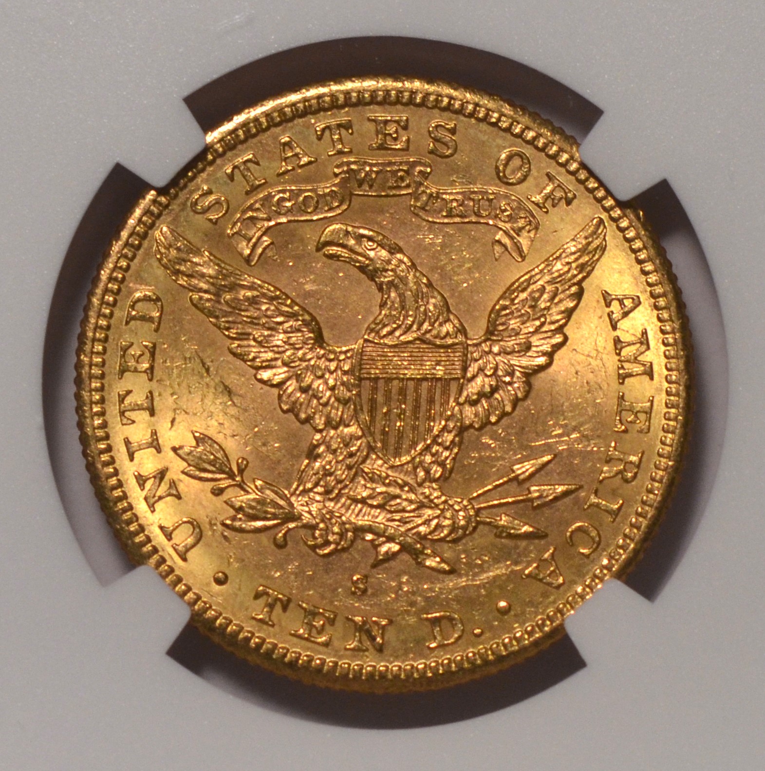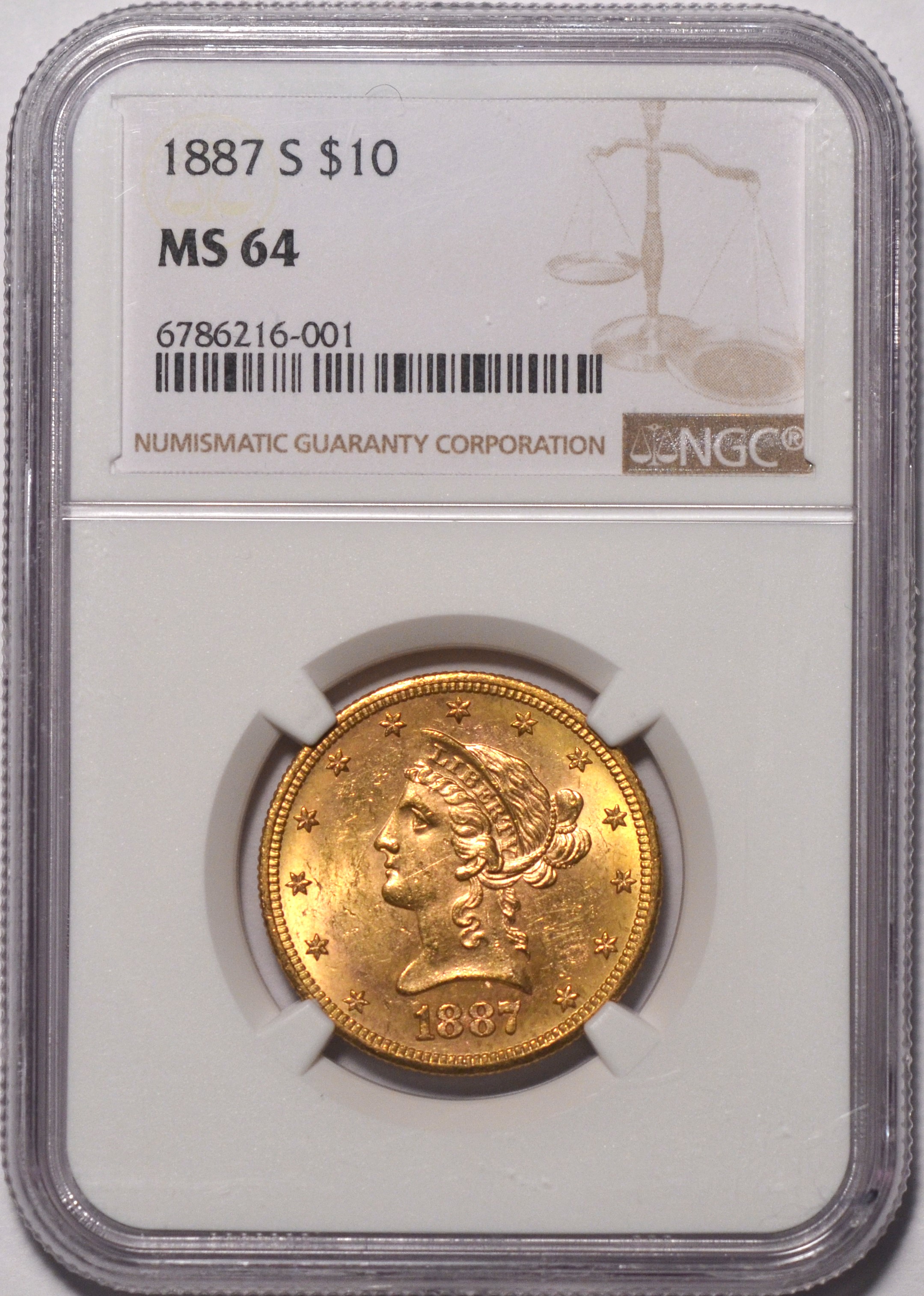 1887-S $10 NGC MS64 Knock your socks off blazer-Conditional rarity - only 3 graded finer.