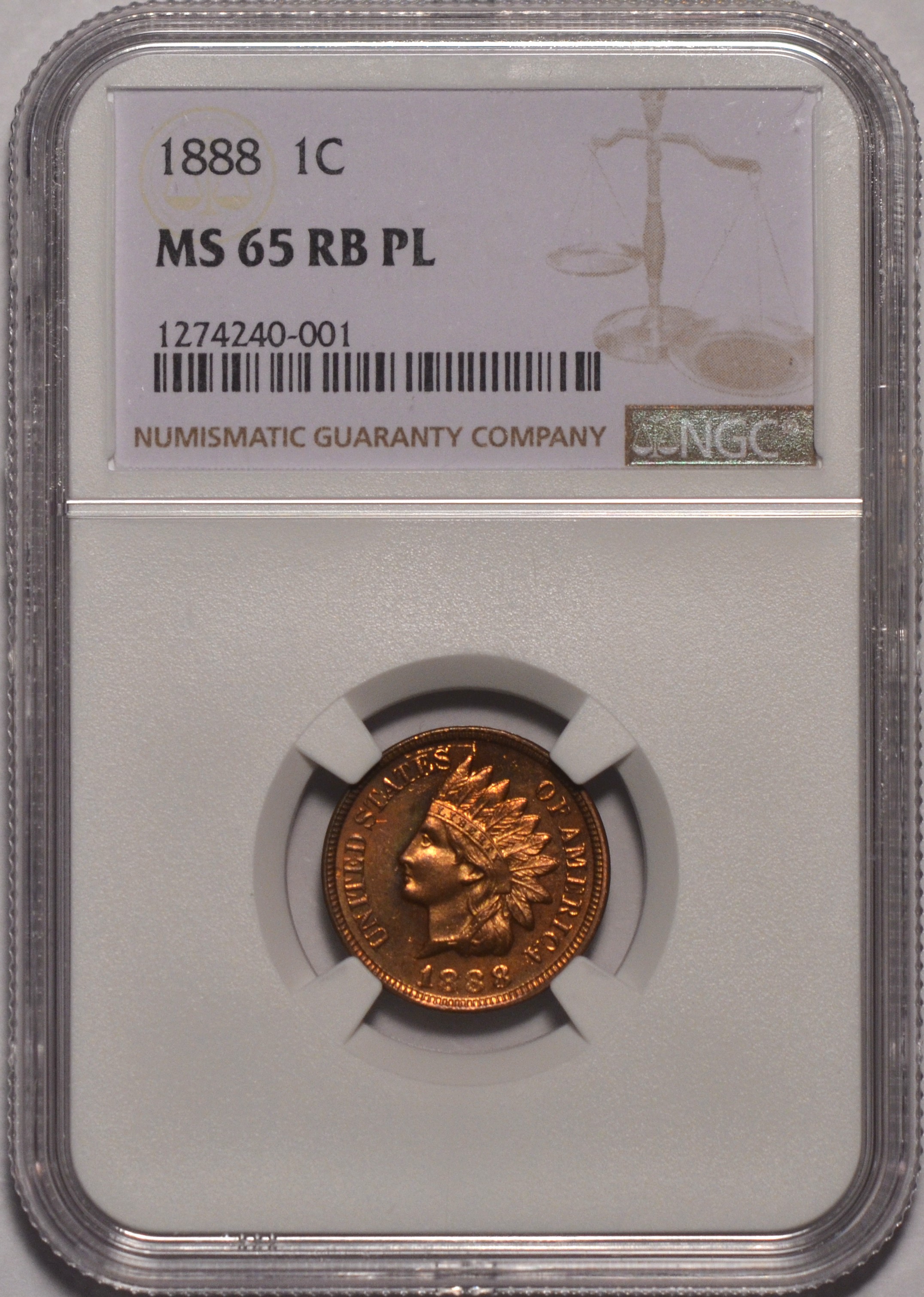1888 Indian 1c NGC MS65 RB PL Incredible Pop 1 Prooflike for the date at NGC; only 4 dates for the entire series! Zero at PCGS!