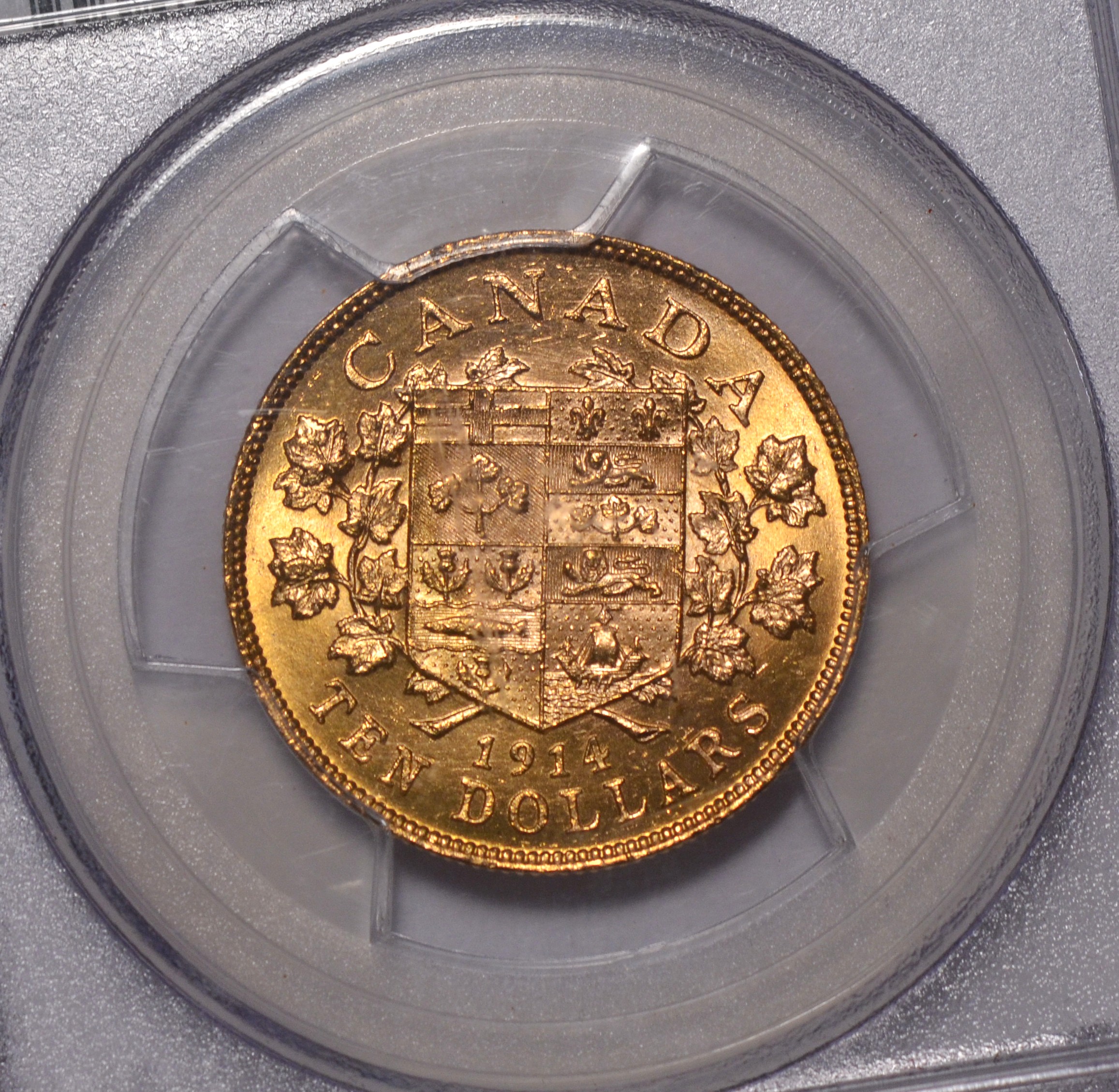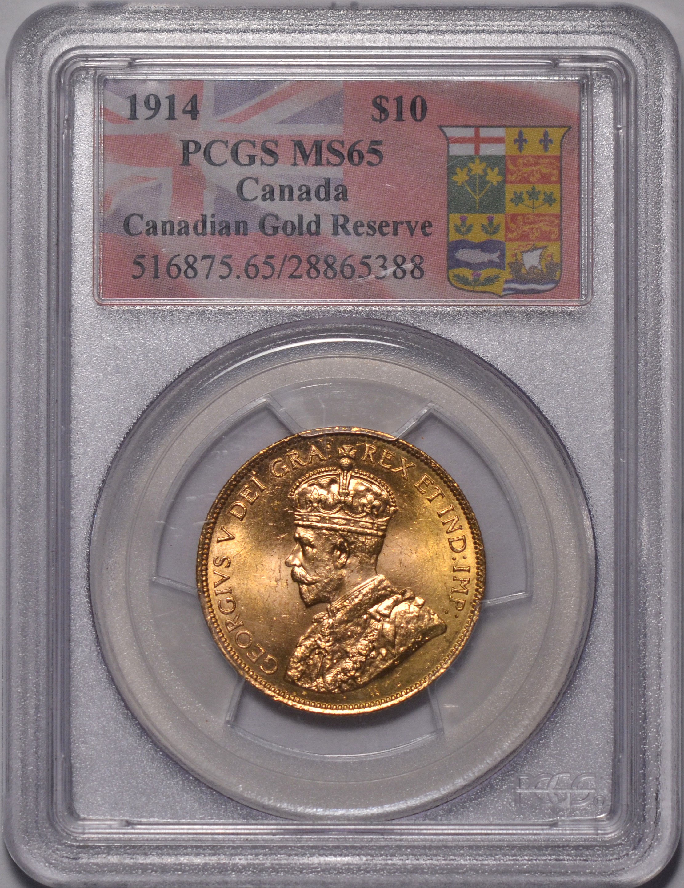 1914 $10 Canada PCGS MS65 "Canada Gold Reserve". George V. Seldom seen in gem. Blazing luster.