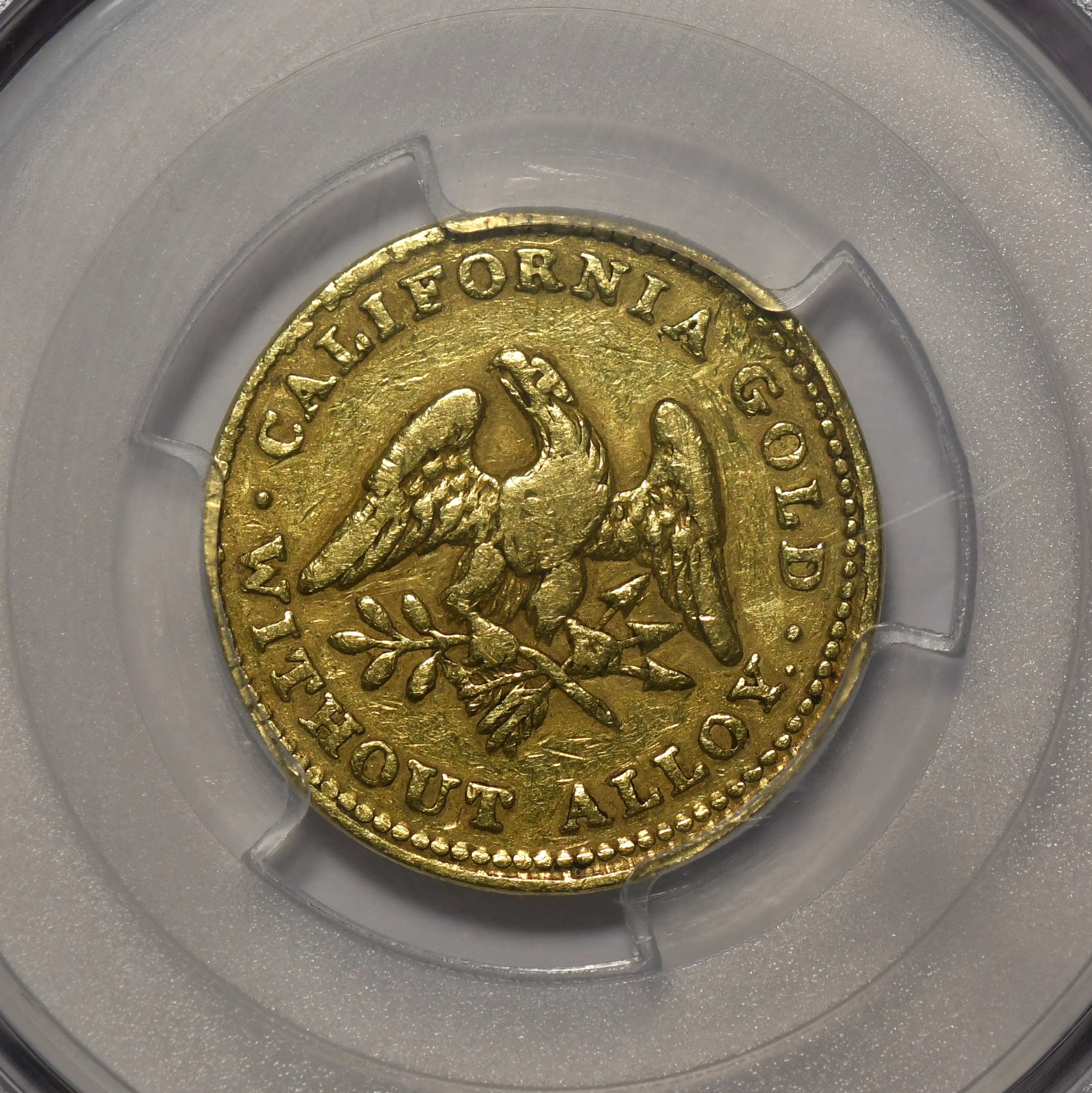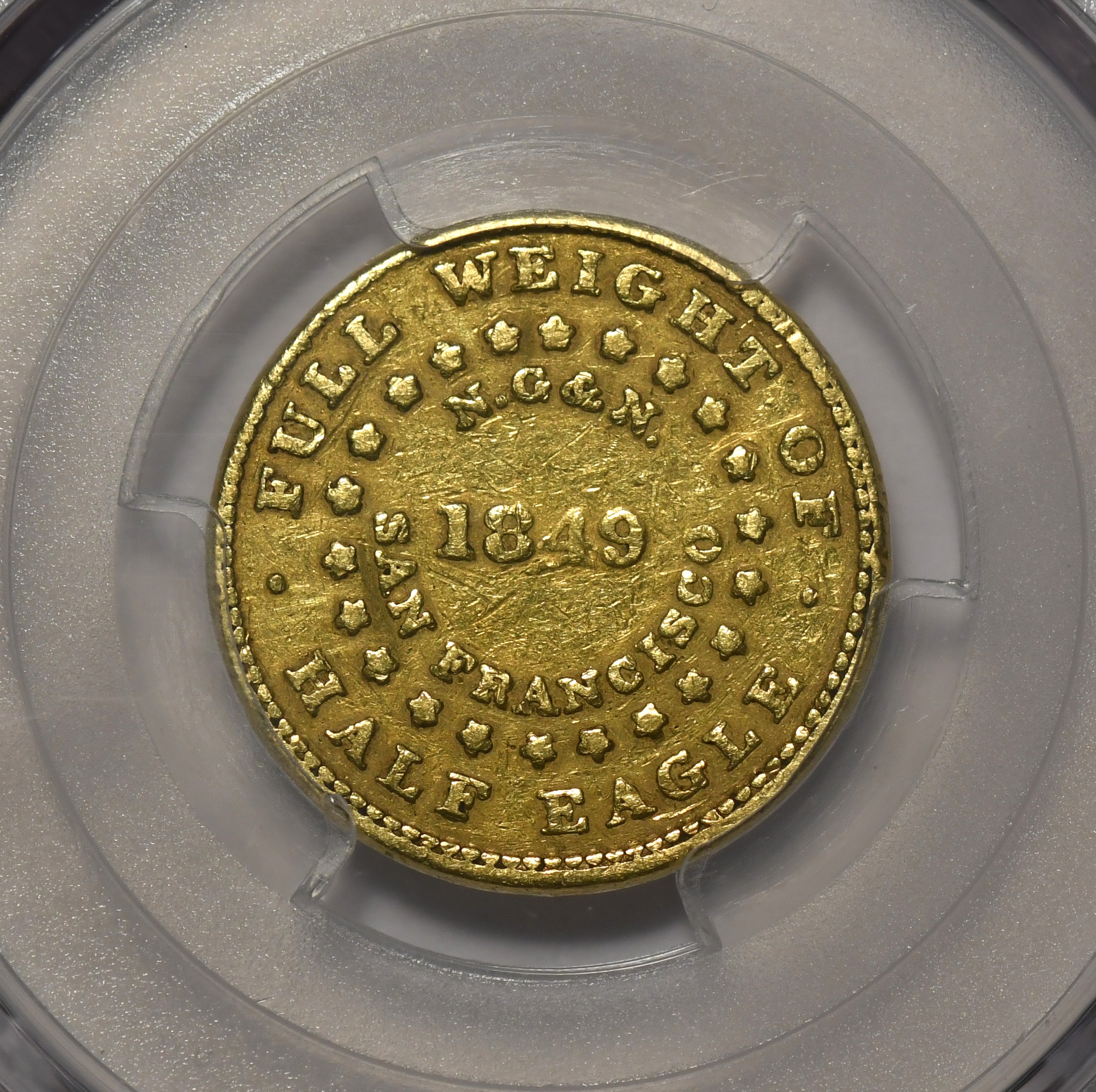 1849 Norris Gregg Norris $5 Territorial PCGS VF20 California Gold Rush Gold-Plain Edge. K-2, R-5-. Bold detail. Scarce. The first of the California private gold coinsin strong very fine 20. Imagine the stories this gold coin could tell!