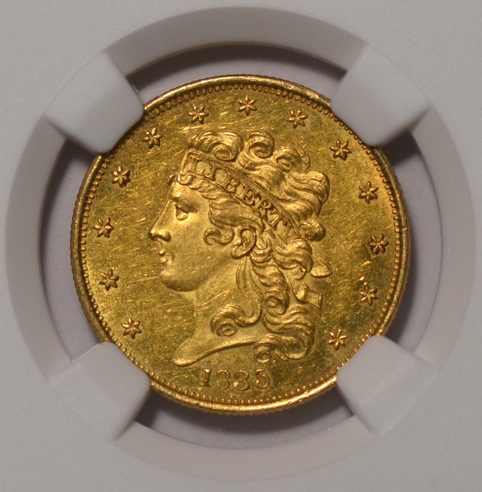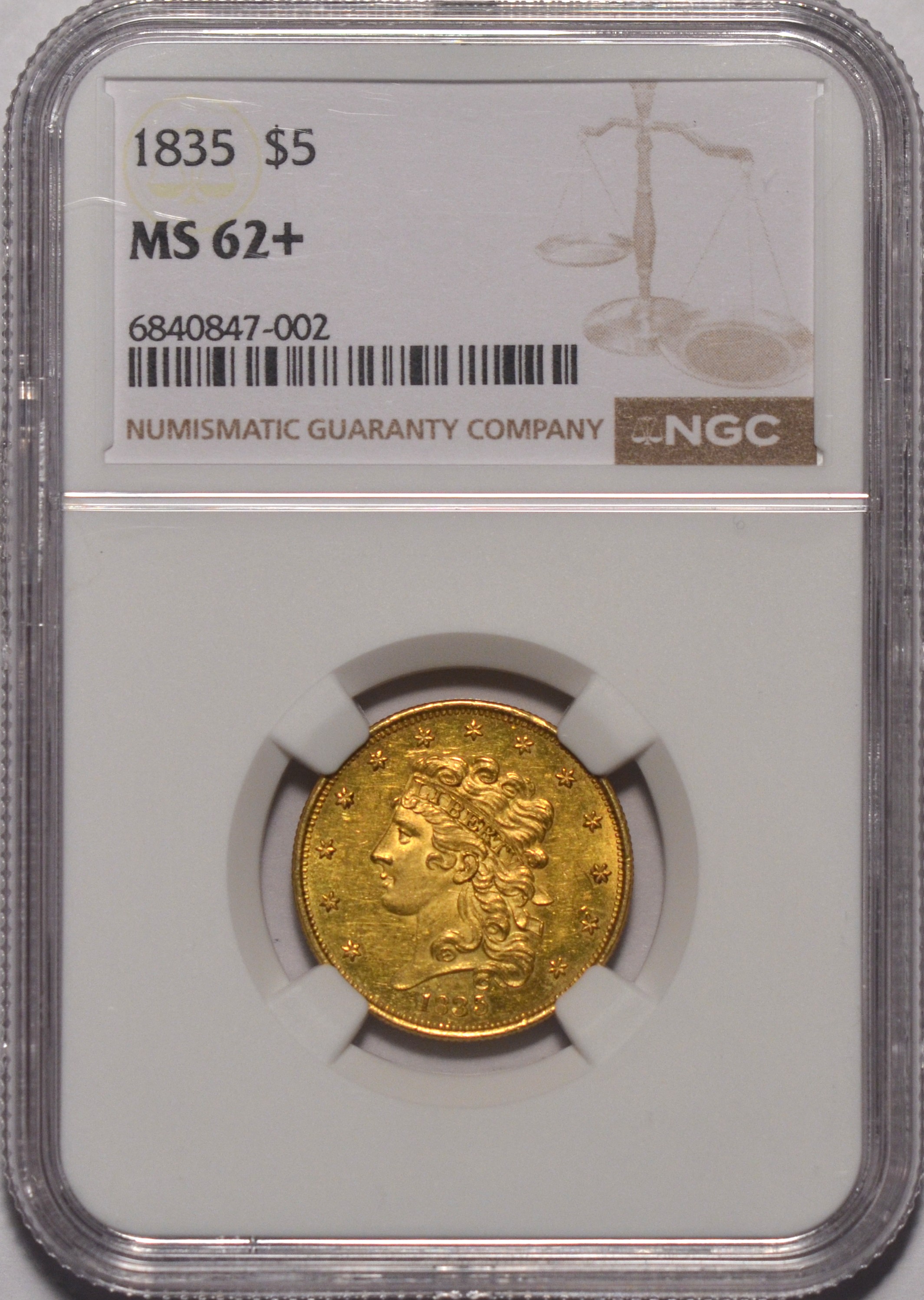 1835 $5 NGC MS62+