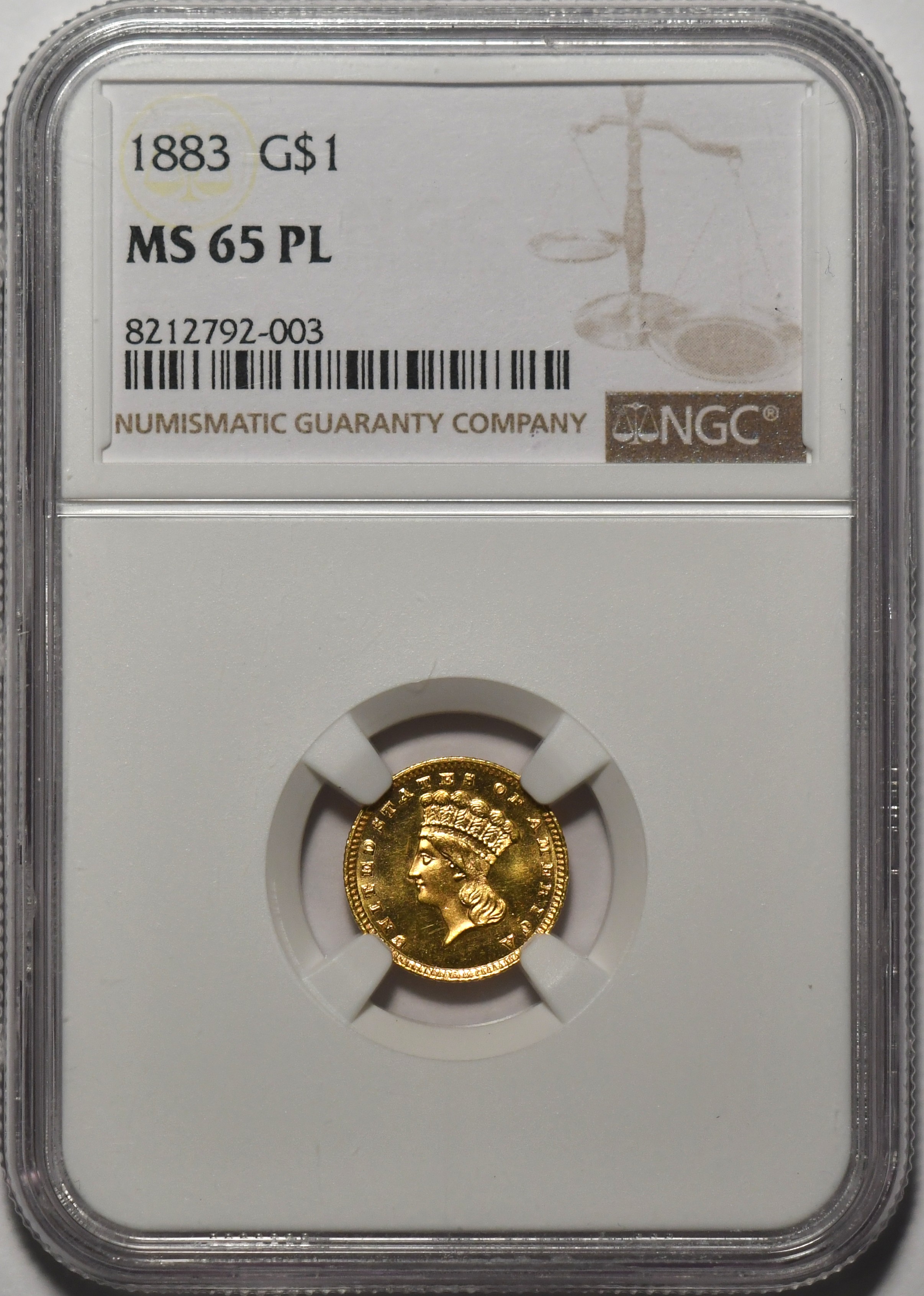 1883 Gold $1 NGC MS65 PL