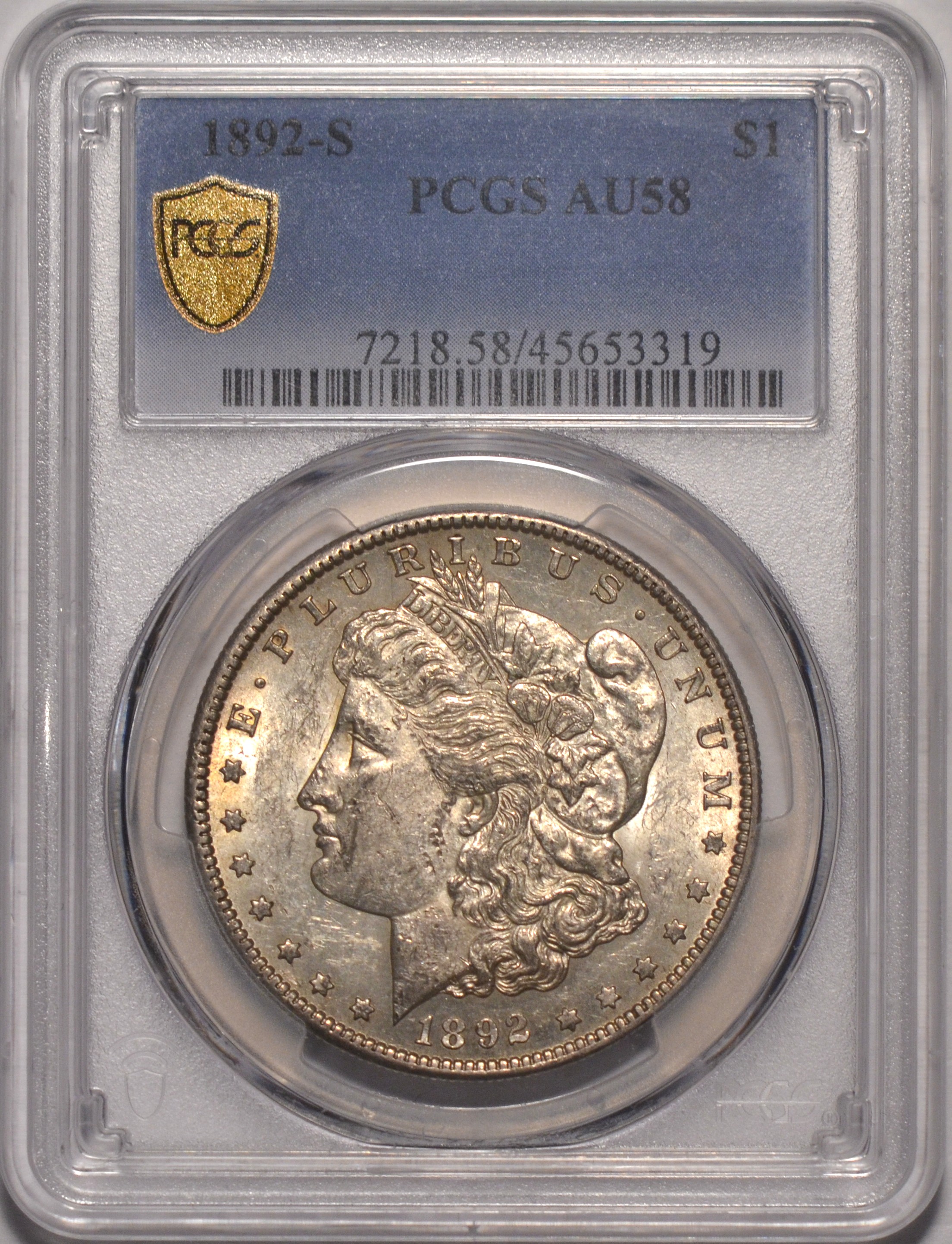 1892-S Morgan $1 PCGS AU58 Crisp slider. Huge spread to Unc (45-50k+) - superbly rare silver dollar about uncirculated and choice.