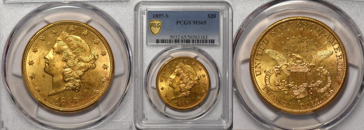 gold, to a gem MS-65 1897-S $20 that has incredible eye appeal as
