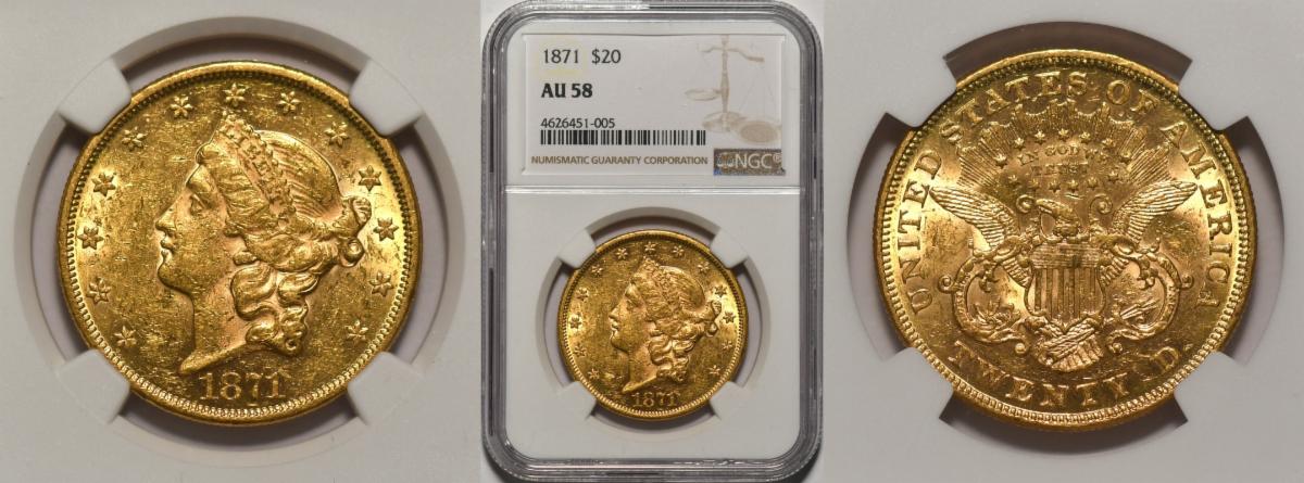 Shipwreck, followed by 1858, 1859,1871 double eagles all in choice