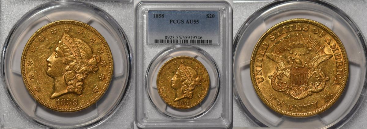 including an 1854 Small Date $20 from the SS Central America
