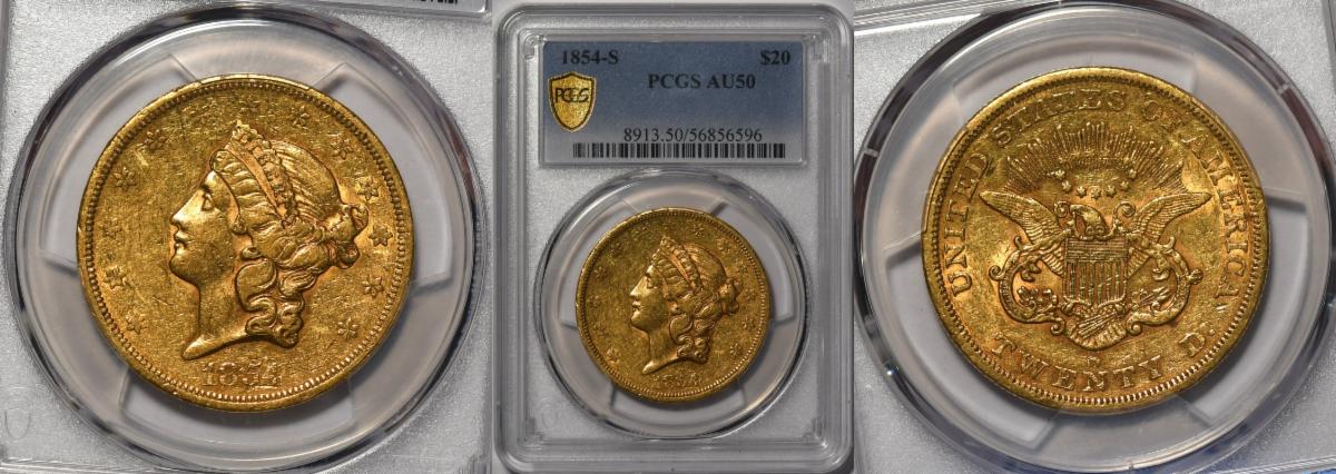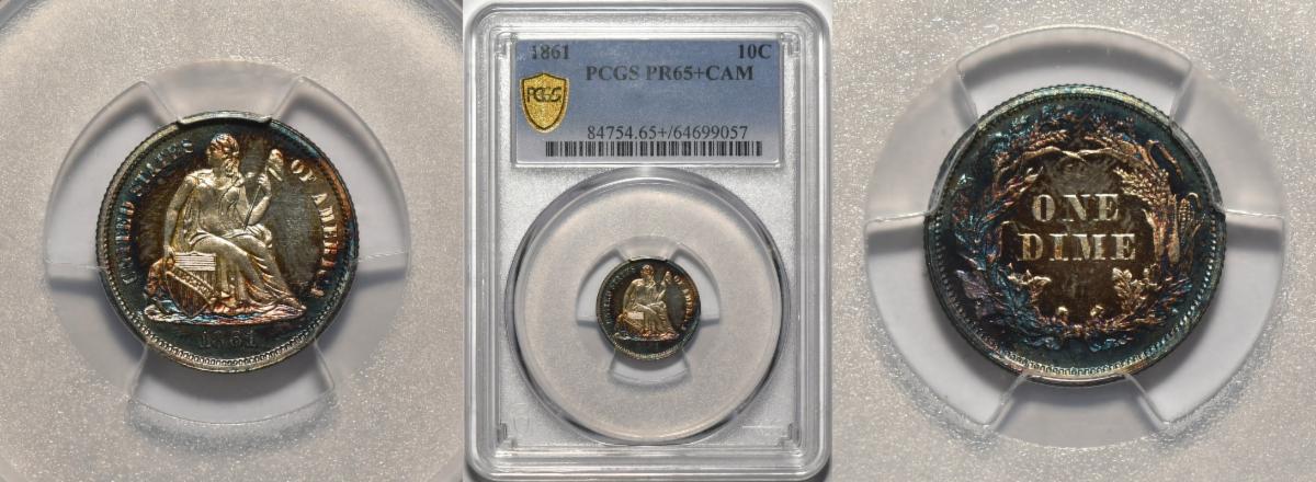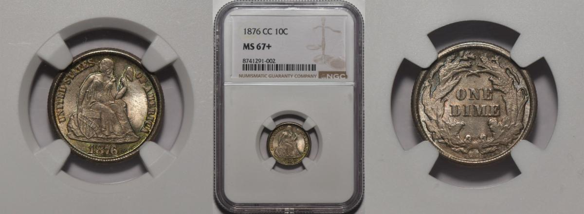 This weeks hand picked offerings begin with a scarce Civil War Dime of 1861 in Proof 65 Cameo that will knock your socks off followed by an incredibly rare 1876-CC Dime in NGC MS-67 PLUS that is off the charts with eye appeal and rarity. Next up the first Morgan Dollar with 8 Tailfeathers in Gem MS-65 CAC followed by a Civil War Date Gold Dollar of 1865 in choice uncirculated condition. Next up is perhaps one of the greatest sleepers in all of numismatics, certainly in the quarter eagle series and that is the 1848 NO CAL quarter eagle this one in very choice about uncirculated condition followed by a grand 1854-S Double Eagle in About Uncirculated, lastly an 1866 Motto double Eagle in Uncirculated with claims to choice.