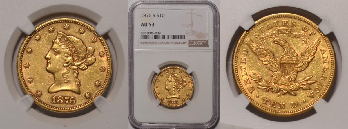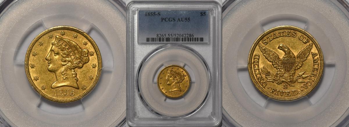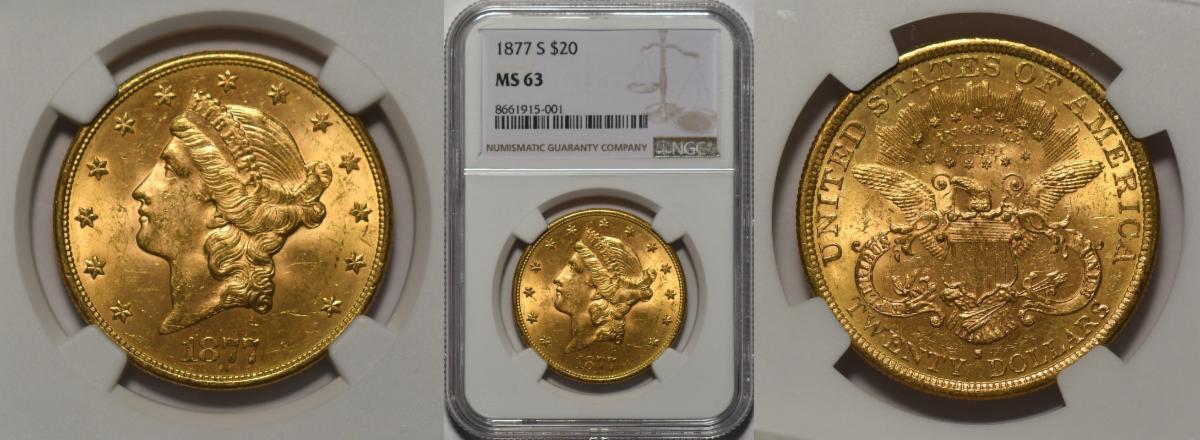 This weeks hand picked offerings begin with a rarely seen Proof Twenty Cent Piece of 1875 one of only a few at the lofty grade of Proof 66 Cameo, followed by one of the great keys in the Morgan Dollar Series, this one a rare 1892-S in very choice about uncirculated 58 by PCGS, only to be outshined by an incredible 1883 Gold Dollar in Gem 65 Prooflike ( ! ) , on to some extra scarce to uber rare gold coins starting with an 1855-S Half Eagle in choice about uncirculated 55 followed by a Civil War dated 1861-S Gold Eagle in Extremely Fine 40 that is quite wholesome and desirable followed by the always popular 1876-S Eagle in choice about uncirculated, next is a very rare early Type 1 Liberty Double Eagle of 1854-S in uncirculated, to a very premium quality 1877-S $20 NGC MS63 and finally a near gem 1912 St Gaudens in MS-64
