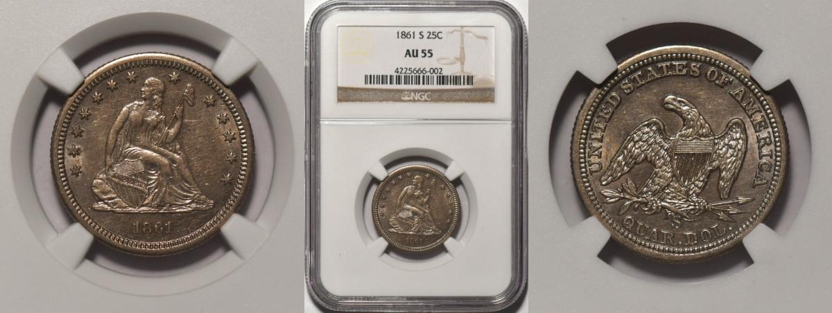 This weeks hand picked offerings begin with a very neat and rare and very chocolate 1794 Large Cent "The Plicae" one of very few in existence and one that is affordable, followed by a rare Seated quarter, first year of the Civil War minted in San Francisco and rarely seen in very choice about uncirculated 55 by NGC, to an early final year of the Draped Bust Half Dollar series 1807 half dollar in extremely fine 40 , to remarkably scarce 1850 quarter eagle gold from the SS Central America 2 Shipwreck followed by the King of Indian quarter eagles the 1911-D with Strong D Indian Gold in very choice about uncirculated condition followed by an uber rare 1866-S No Motto Double Eagle, final year of the type in about uncirculated condition and choice for the grade, followed by a Blazing Gem MS-65 1907-D Liberty Double Eagle you'll need to wear sunglasses to view under the lights, and finally a very neat Saudi Arabia Gold 4 Pound in choice uncirculated MS-61 condition.