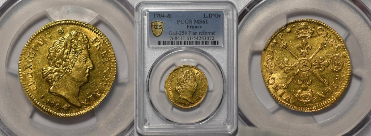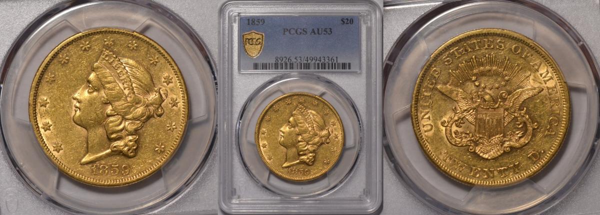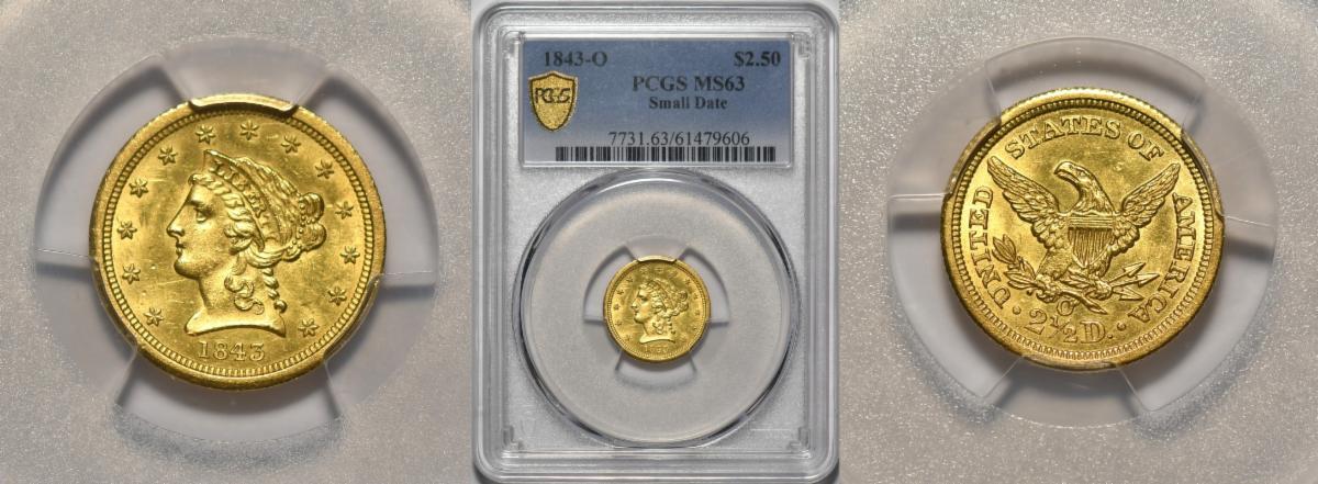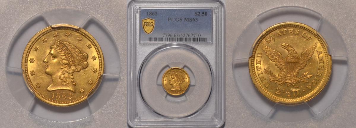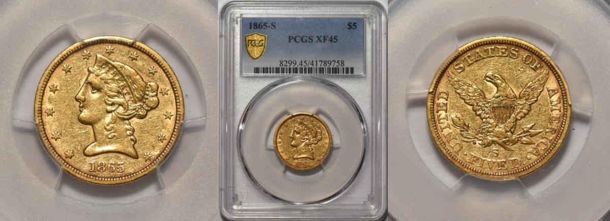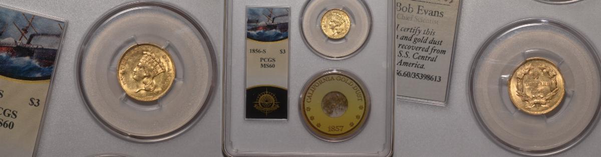 This weeks hand picked offerings begin with a blazing off the charts gem gold dollar dated 1853-O in MS-65 followed by yet another scarce New Orleans gold coin, an 1843-O quarter eagle gold in MS-63 with the next on the list a rare civil War dated quarter eagle of 1862 in high grade MS-63 that looks even nicer, followed by a very tough $3.00 gold dated 1856-S from the SS Central America Shipwreck and is one graded as such and only 1 graded higher, next up we reverse the 56-S to an 1865-S Civil War half eagle scarcity from California in extremely fine 45 that looks about uncirculated, to an extremely rare 1st year of type and very tough to locate as high a grade and as nice a quality as this example in very choice about uncirculated 58, to a lone double eagle of 1859 which sits right next to a choice uncirculated French 1704 LD'Or Gold in MS-61, all in all the investor and collector should be pleased!